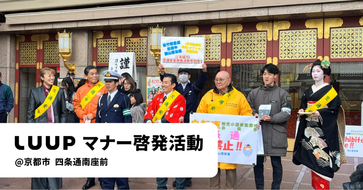 2026年1月6日、株式会社Luupが京都府警察東山署とともに、四条通における自転車と特定小型原動機付自転車の通行禁止に関する啓発活動を行いました。この取り組みは、京都市民の交通安全を促進し、ルールを守った移動を広めることを目的としています。