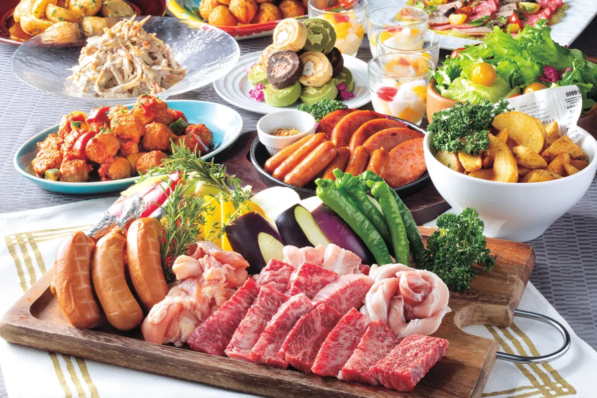 「スタンダードBBQプラン」では、お肉と野菜をバーベキュー形式で楽しむことができ、お値段は税込6,000円。デリビュッフェと同様に、各種お料理を並べてスタイルで楽しめます。