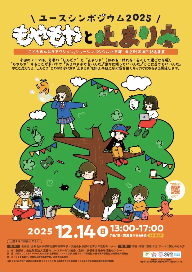 2025年12月14日(日)、京都府立清明高等学校にて「ユースシンポジウム2025」が開催されます。このシンポジウムは、若者の抱える息苦しさや不安に対し、安心して過ごせる場を提供することを目的としています。「こどもまんなかアクション」リレーシンポジウムの一環として、また北区制70周年を記念する意義深いイベントです。