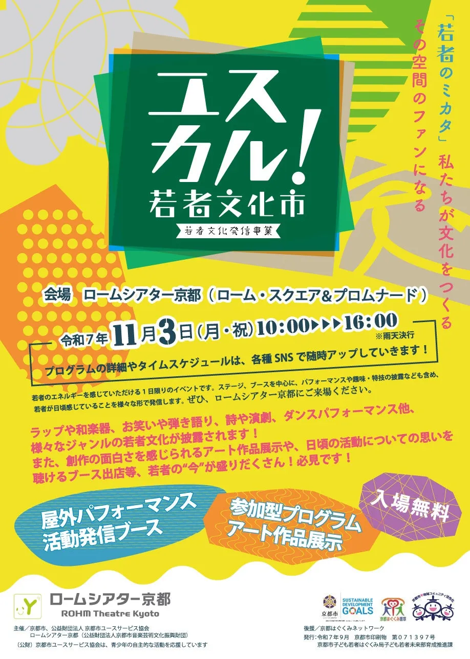 2025年11月3日(月・祝)、ロームシアター京都にて、若者が自らのエネルギーを発信する『ユスカル!(若者文化市)2025』が開催されます。このイベントは、京都市内の青少年活動センターが支援する事業の一部であり、若者文化の多様性を感じられる貴重な機会です。事前の企画やプログラムに制限を設けず、多様な表現が行われることが特徴です。