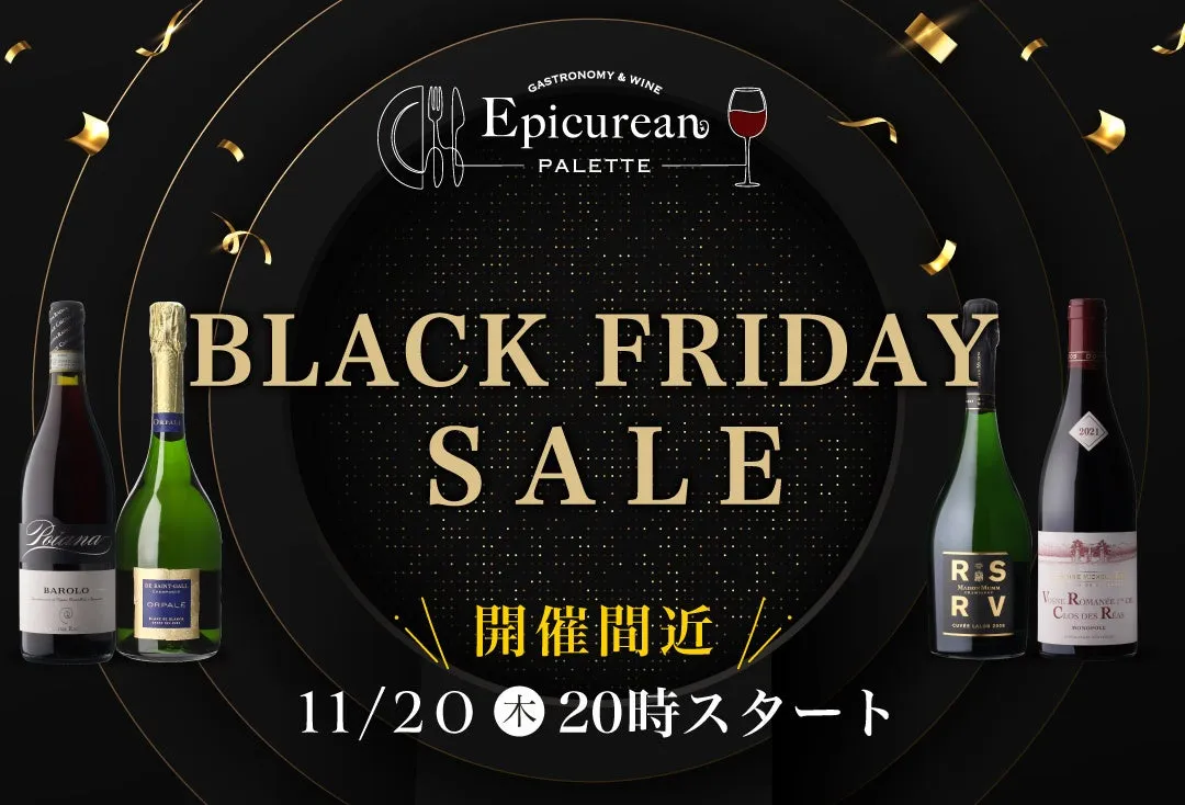 エピキュリアン・パレットでは、感謝の気持ちを込めた「ブラックフライデーセール」を開催します。2025年11月20日(木)から30日(日)まで、特別な価格で極上のワインをお楽しみいただけるチャンスです。人気の高級ワインや希少なアイテムを数量限定でご用意しておりますので、どうぞお見逃しなく!