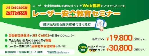 このオンライン形式のセミナーは、受講者の都合に合わせて学習をスケジュールできるため、忙しい業務の合間を縫って受講することが可能です。レーザーに関する安全な取り扱いをしっかりと学ぶことで、事故やトラブルを未然に防ぐための重要なステップとなるでしょう。