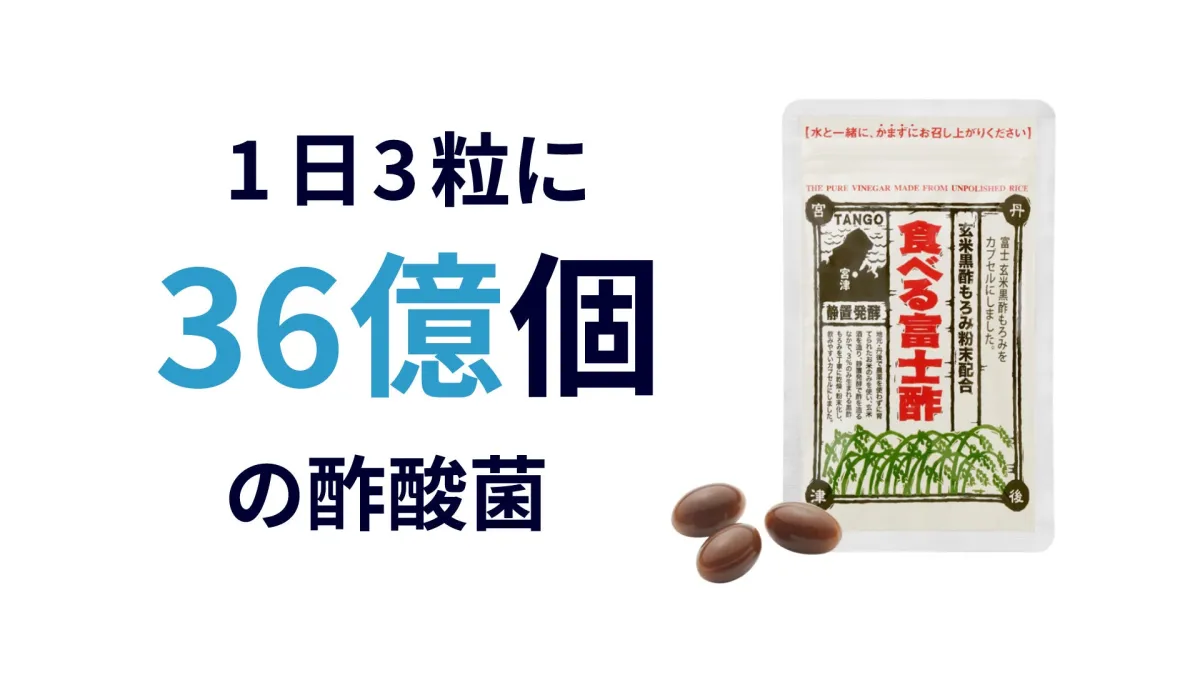 最近、注目を集めているのは酢酸菌です。特に京都府宮津市に本社を構える株式会社飯尾醸造が作る黒酢カプセル『食べる富士酢(酢酸菌入り)』は、1日分のカプセルを摂取することで36億個もの酢酸菌を体内に取り入れることができると、2025年の分析試験結果で確認されました。これは、1粒あたり12億個の酢酸菌を含むという驚異的な数字です。