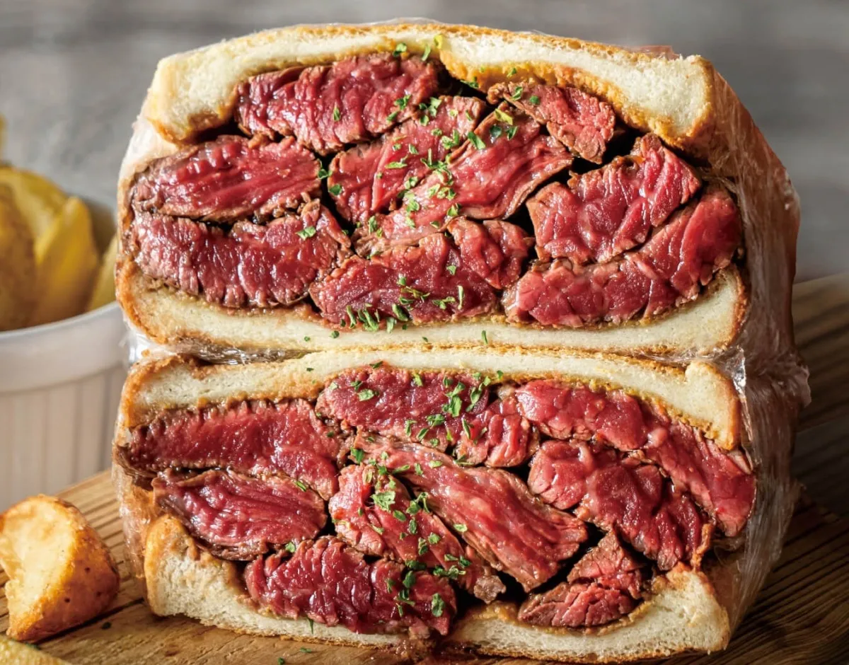 「チャームサイドサンドイッチ」の看板メニューは、圧倒的なボリュームの「ミートボックス」。使用しているのは最高ランクのUS牛のサガリという希少部位で、300グラムを使用。自家製シャリアピンソースとハニーマスタードで味付けされており、皮付きポテトも150gついて税込3,000円のコストパフォーマンスも魅力的です。
