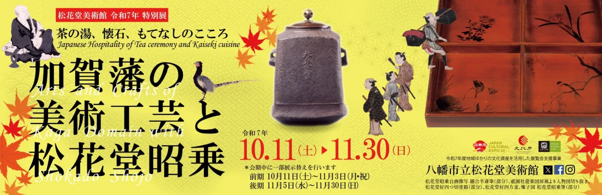 今年の秋、八幡市の松花堂美術館では「加賀藩の美術工芸と松花堂昭乗茶の湯、懐石、もてなしのこころ」という特別展が開催されます。会期は2023年10月11日から11月30日まで。江戸時代初期を生きた松花堂昭乗の影響を受けた文化を中心に、美術品や懐石料理、茶の湯にまつわる展示が行われる珍しい機会です。