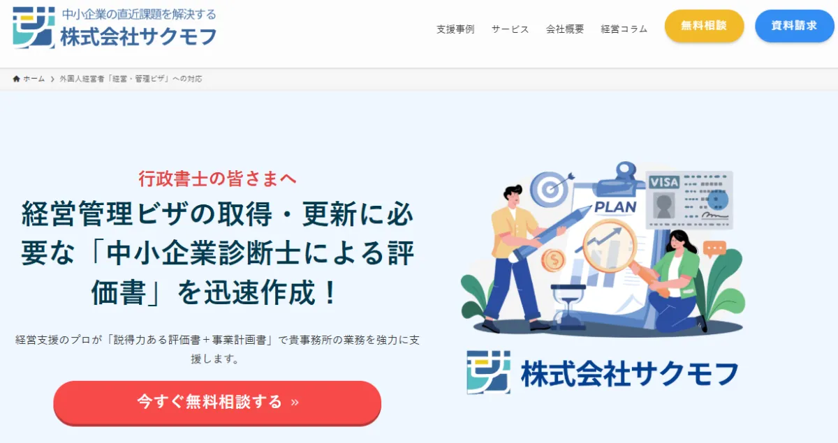 公式サイトをご覧ください。経営・管理ビザでお悩みの方は、この機会にぜひサクモフにご相談ください。