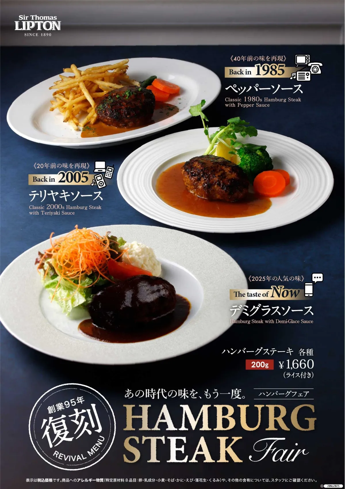 創業95周年を迎えるSir Thomas LIPTONの復刻ハンバーグフェア
