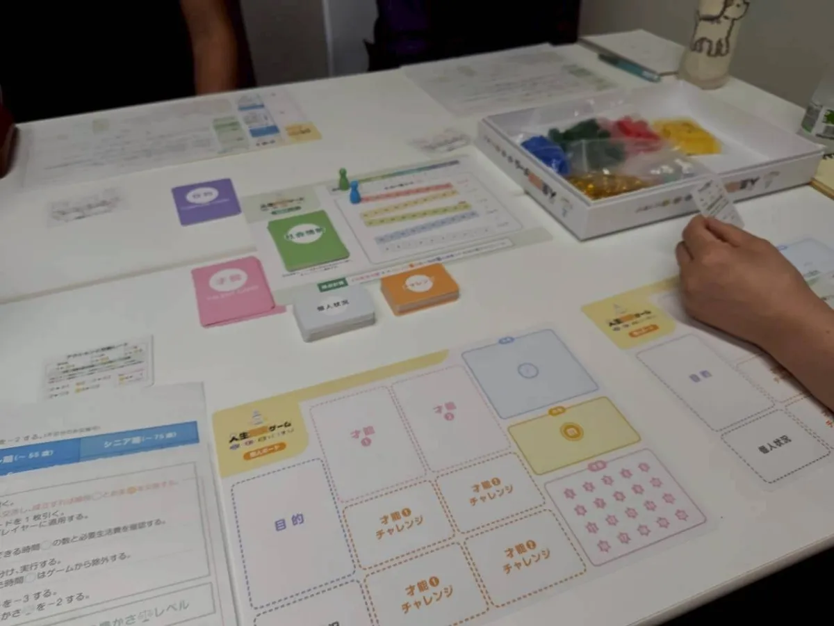 「人生充実ゲーム」は、4名から16名の参加者を対象とし、所要時間は3〜4時間です。ボードゲームという形式で、楽しみながら学べる体験を提供します。