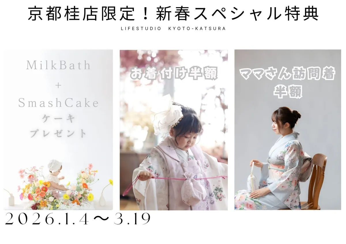 春の訪れを告げる2026年、ライフスタジオ京都桂店が魅力的な撮影プランを展開します。このキャンペーンは2026年1月4日から3月19日までの期間限定で、特に「ミルクバス撮影」「七五三後撮り」「訪問着のお支度」といった3つの特典が用意されています。家族の大切な瞬間を美しく切り取る絶好のチャンスです。
